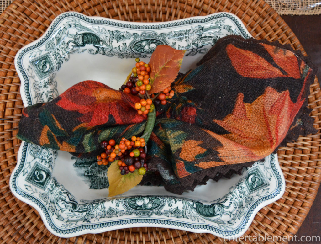I picked them up on the Attic sale earlier this year. A tablecloth and pillow cover are still available. The bittersweet napkin rings are from Pier 1 last year and used previously here and here.