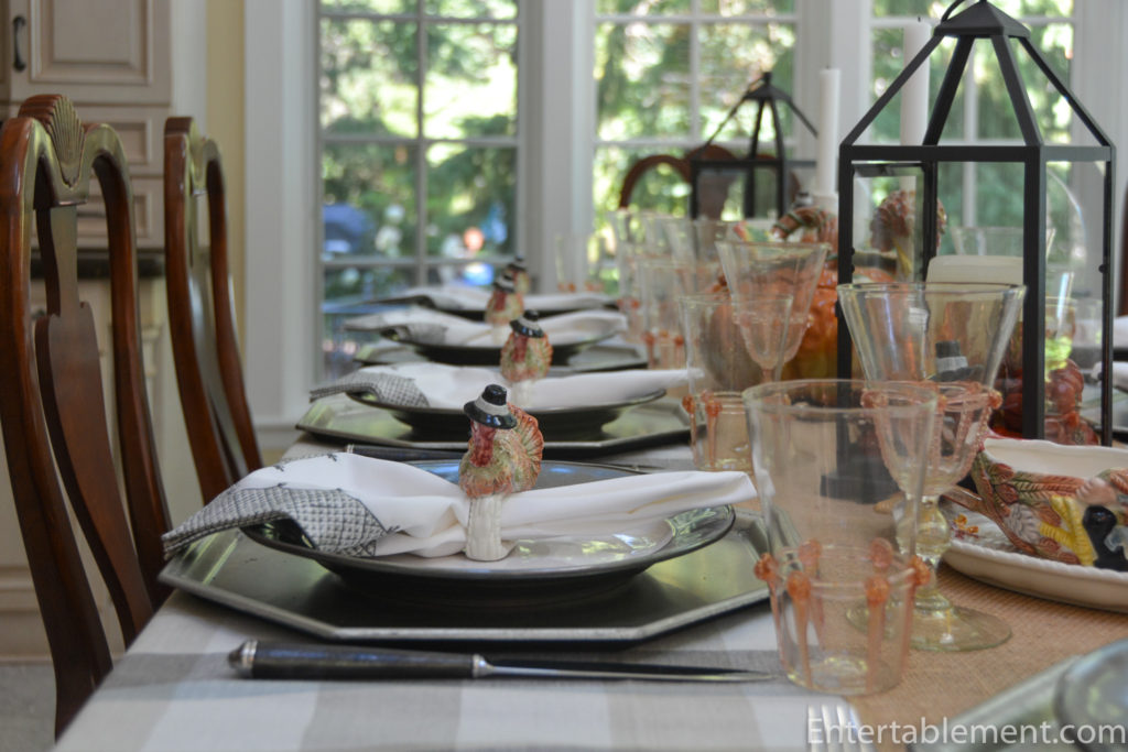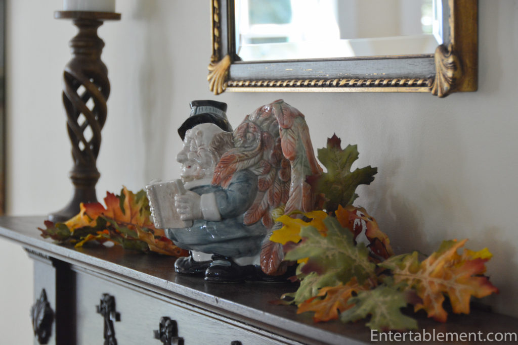 Oh my. This is such a delightful tablescape – it would be impossible not to smile when looking at it. The expressions on the faces of Percival, Prudence, and the turkey are just priceless! I’m not sure which one is my favourite piece, but the pitcher with the turkey looking over Percival’s shoulder with the recipe book is hilarious. It must have been so much fun to collect and assemble this table. Thanks for sharing.