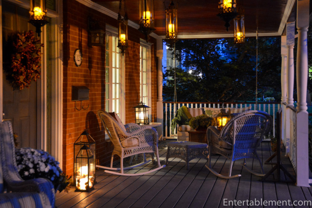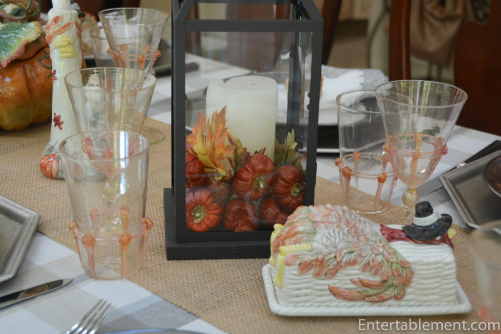 Tablecloth ironed, the runner in place, lanterns filled with mini-pumpkins and candles. Check.