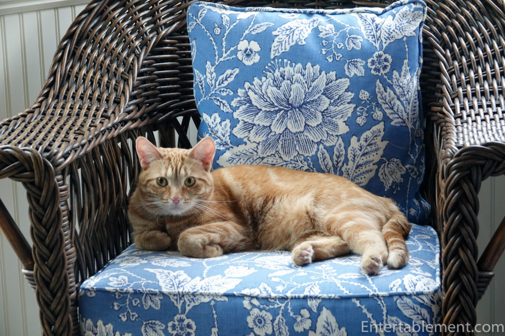 Alas, poor CJ is not a ginger, even though I’ve always had a preference for them. I had sworn no more cats of any color, but he arrived at the door, tiny and sick, and insisted he was ours. He lived up to the name and turned out to be the sweetest one we ever had. Now he is large and in charge! Our prior series of cats were named for various types of peanut butter (our son was young and he got naming rights)- Crunchy, Jiffy, and Skippy.