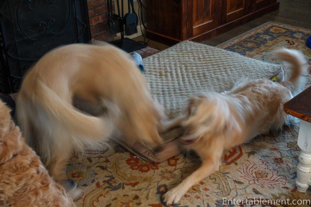 He and Clementine still play together. It’s less frequent, but still fun to watch. Clementine is always up for a wrestle, but Dundee has a bit more dignity these days. And he’s lazier.
