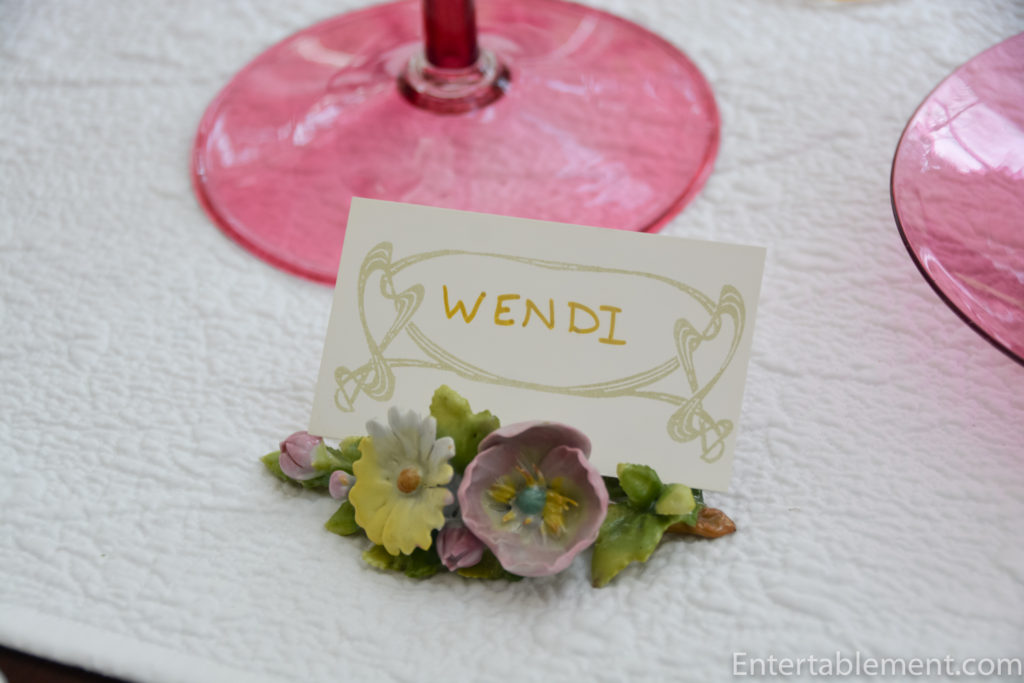 Delicate porcelain placecard holders added another layer of floral detail.