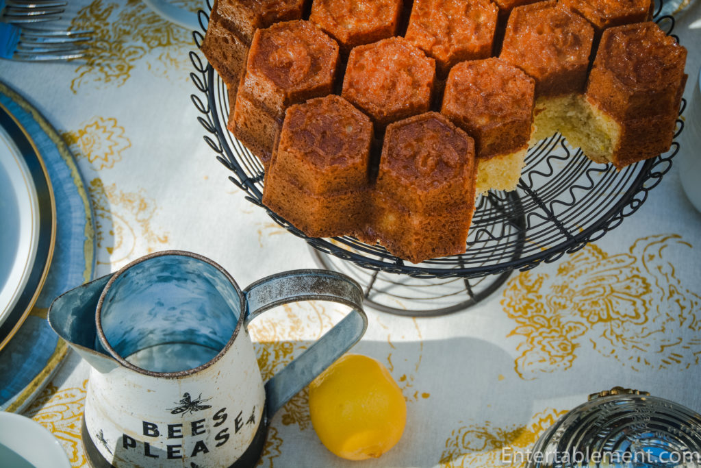 The honeycomb pan for this cake has been lurking in my cake pan cupboard for a couple of years, waiting for its debut. Once the Bee plate table started to percolate, out it came. But first I had to do some research on the ultimate cake batter for this tricky pan.