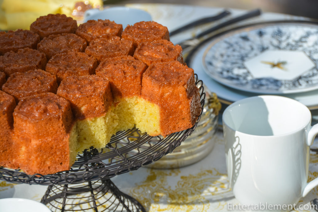 This buttery bundt-style cake has a light, spongey texture with hints of lemon and a touch of sweetness. Delicious!