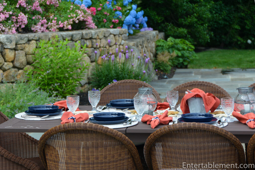 Once I’d taken the shots, I removed four place settings so we could have a proper socially-distanced dinner with another couple. It’s one of the benefits of a large table and being able to dine outdoors. It’s going to get trickier when the weather changes, but no doubt, we will manage.