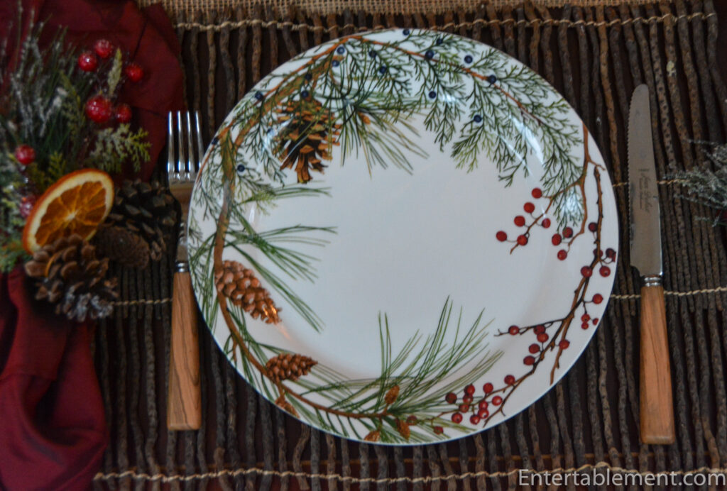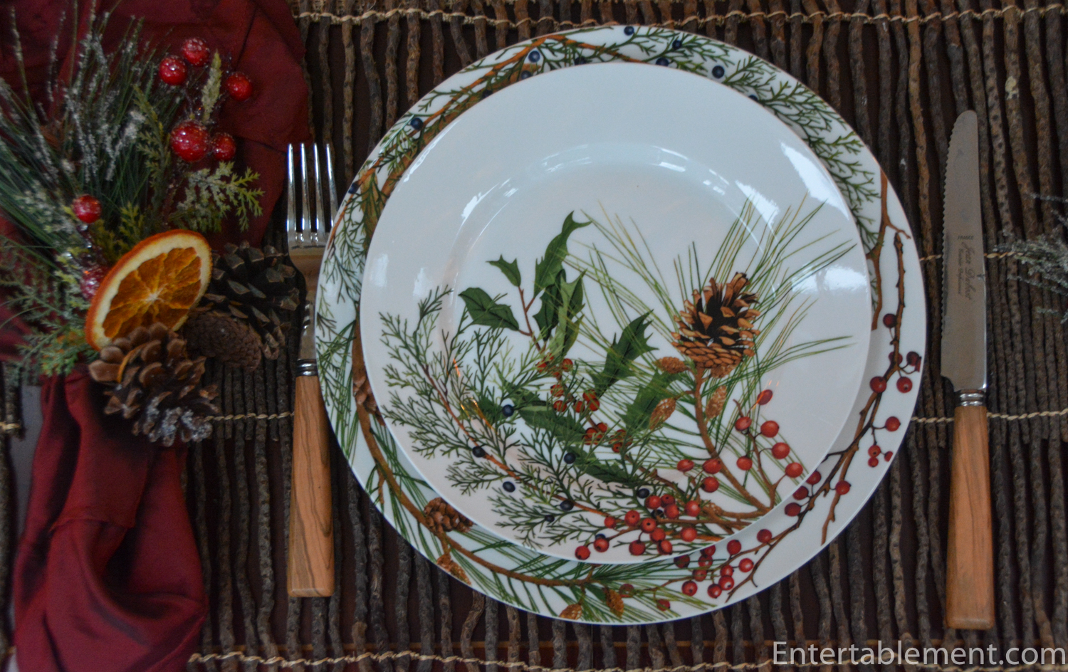 Winter greenery, in the form of holly, pine, juniper and winter berries, feature heavily on Woodland Berry plates by Williams Sonoma,