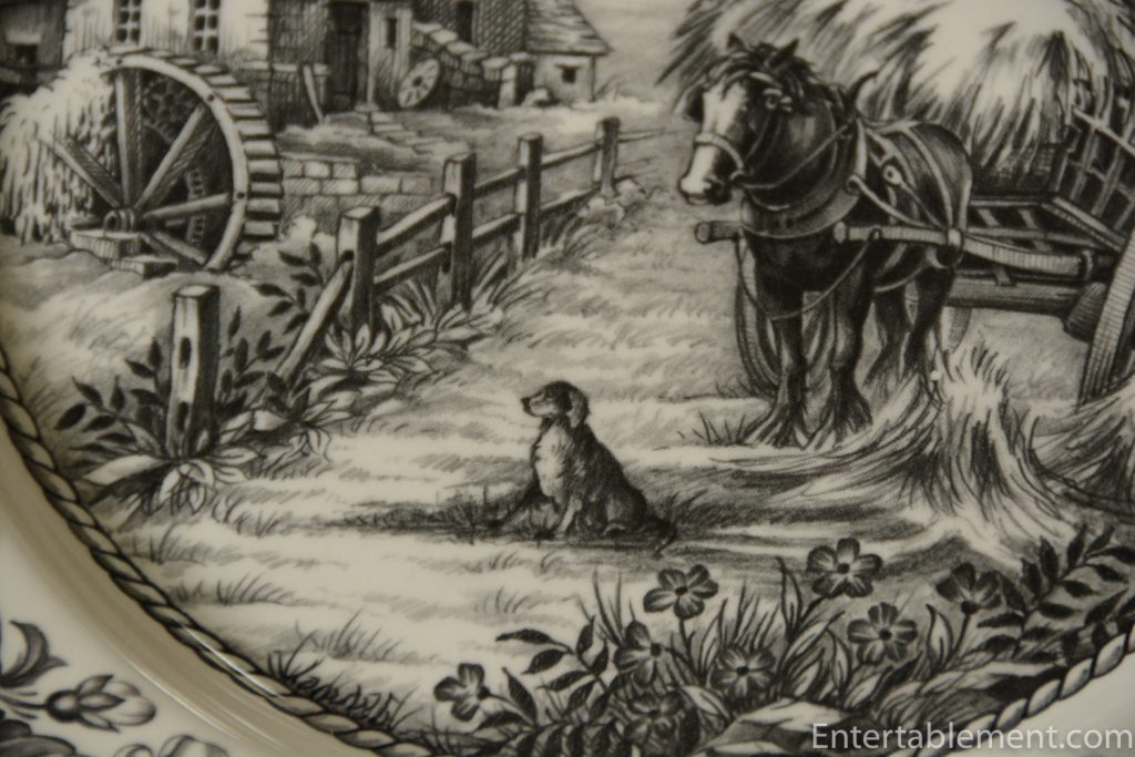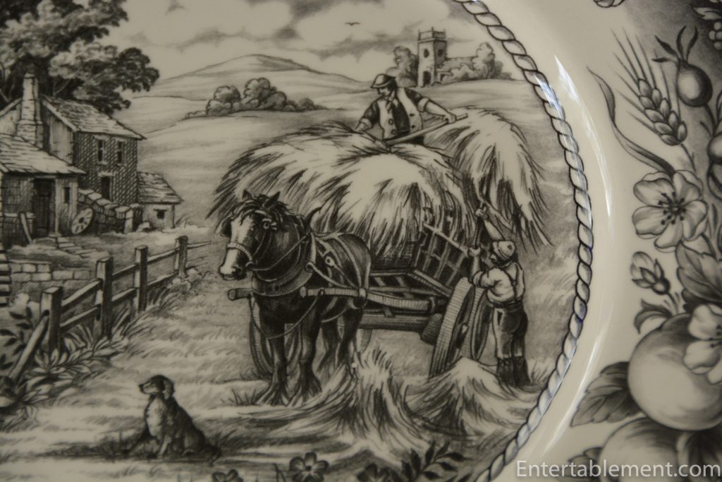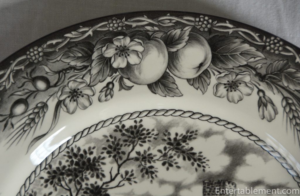 There are six different scenes in the modern Royal Stafford transferware line; the harvest fruit border is consistent.