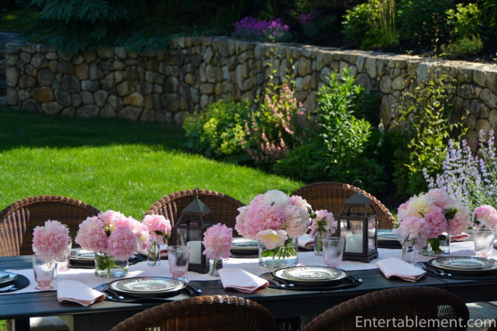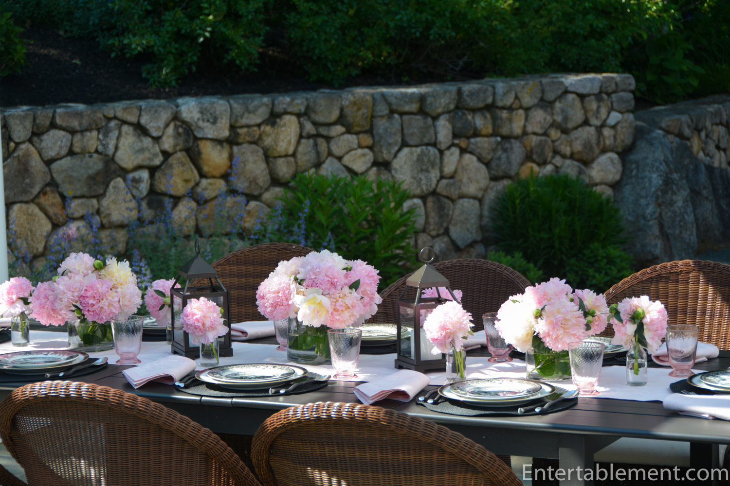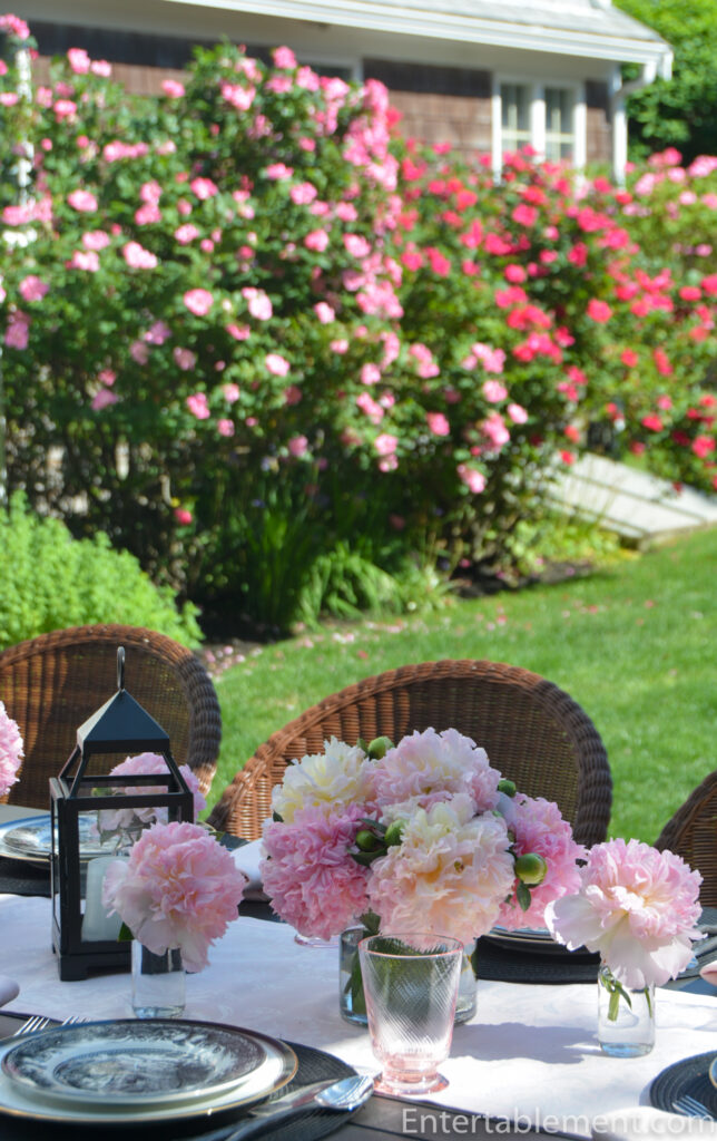 Your peonies are gorgeous. We had weeks of drought. When plentiful rains refreshed the garden, everything looked brown except my peonies so I didn’t cut any bouquets from the bushes. Really enjoyed the vases lining the table here!