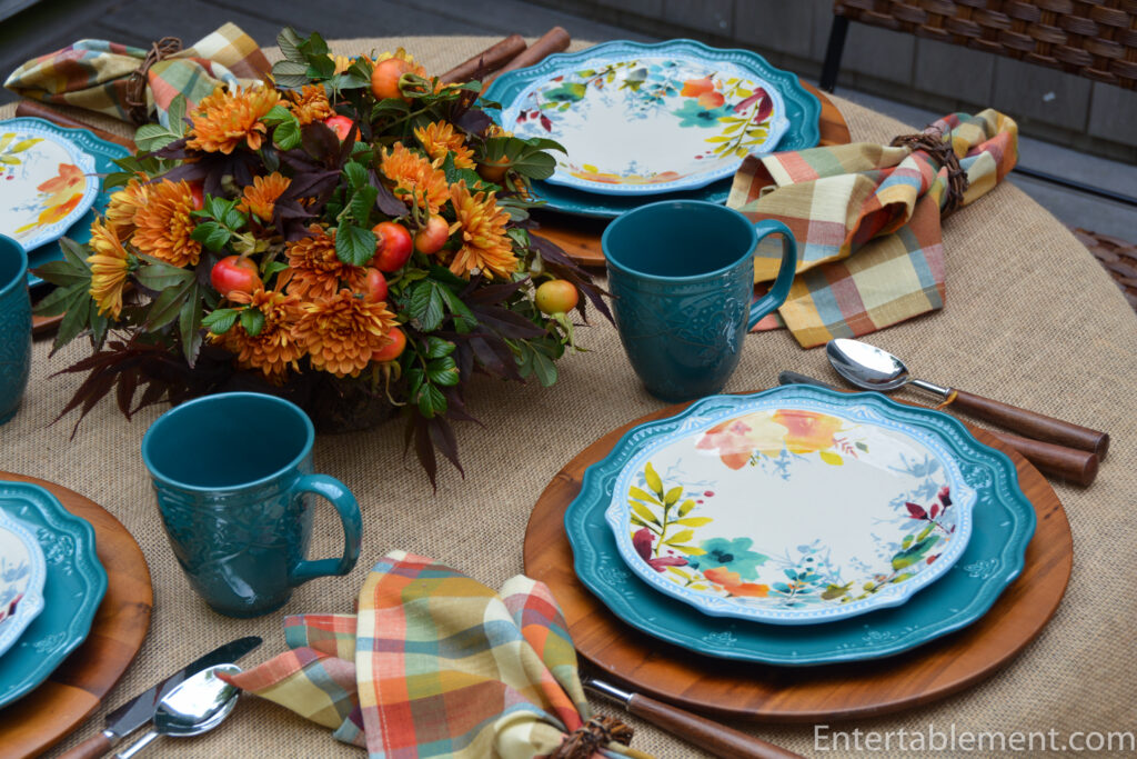 Autumn brought us (and Annie!) a pretty and inexpensive dinnerware set by Pioneer Woman, Farmhouse Lace, which comes in various colours. The Willow salad plate is also by Pioneer Woman.