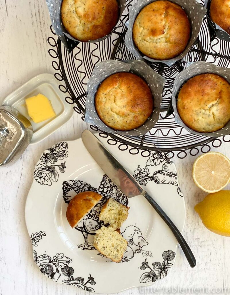 The cake stand you see lurking in the background holds Lemon Poppy Seed Muffins. Breakfast, anyone?