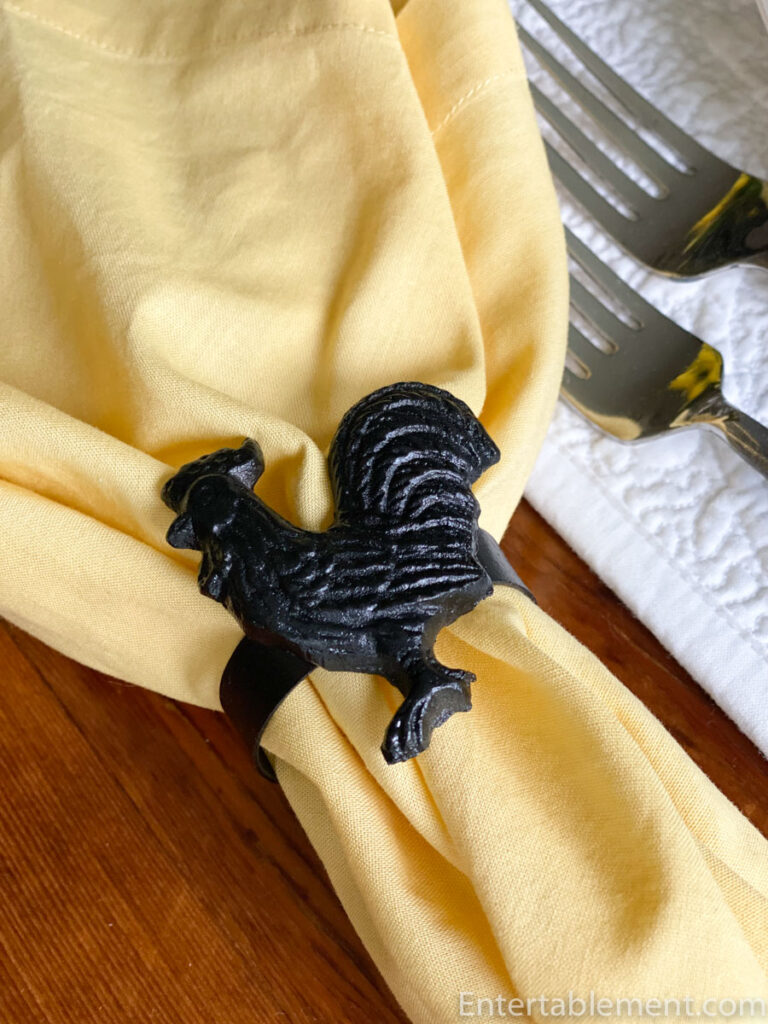 The rooster napkin rings fit right in with the barnyard crowd.