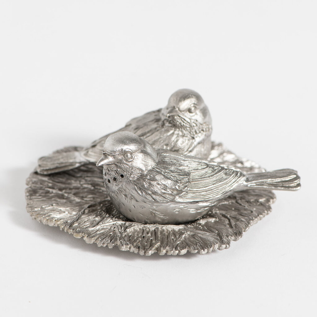 …as well as a set of pewter salt and pepper shakers. This set came from Blantyre Country House Hotel in the Berkshires years ago, but I’ve since seen them described as the Kirtland Warbler and are available from Rookwood.com.