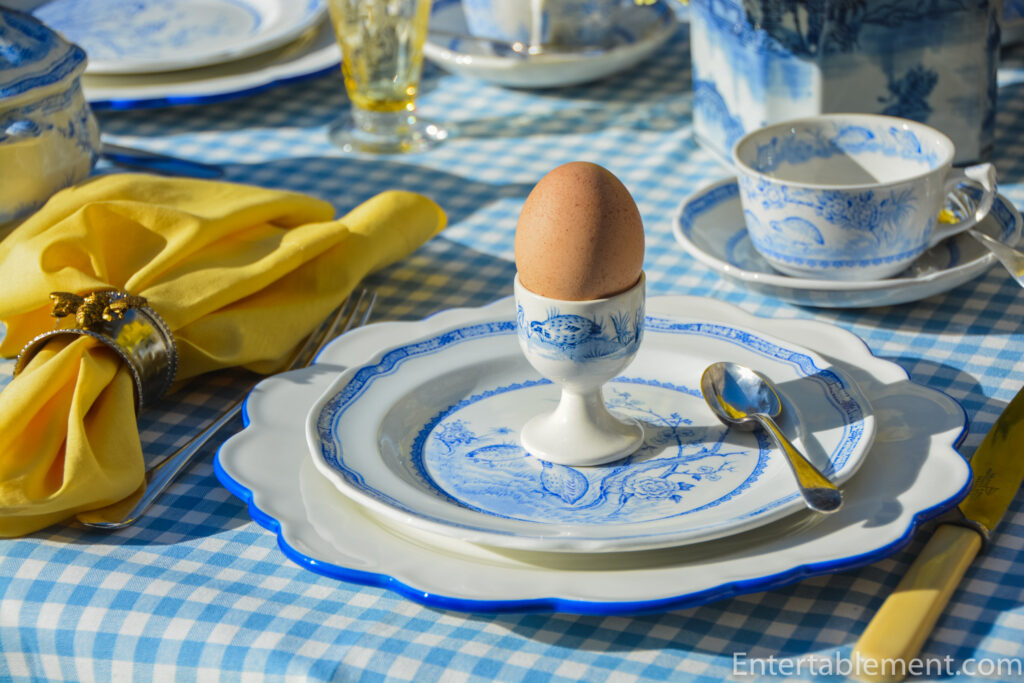 Lovely overhead photo of the table and beautiful setting. Quail Blue is so charming and I love the shape of the teapot.