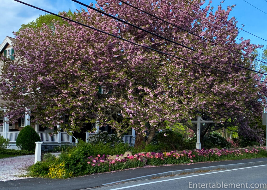 I’ll be interested to see if they come back next year. In my experience, tulips behave like annuals, despite the much-vaunted “long-lasting bulbs”. The squirrels make off with them; the deer chomp on the flowers (unlike daffodils, which they don’t touch. I’ve given up planting tulips and am very grateful to the owner of that house for planting these gorgeous blooms.