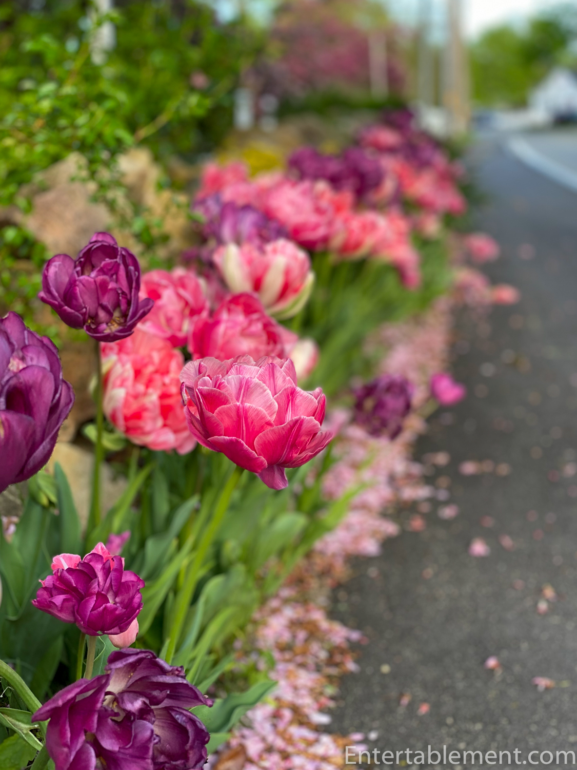 The peony tulips in the photo of the boulevard are gorgeous! I find where we live, the fancier tulips such as peony tulips, parrot tulips, and feathered tulips are not always reliable depending on what our winter was like. I do enjoy a variety of colours of other types of tulips though.