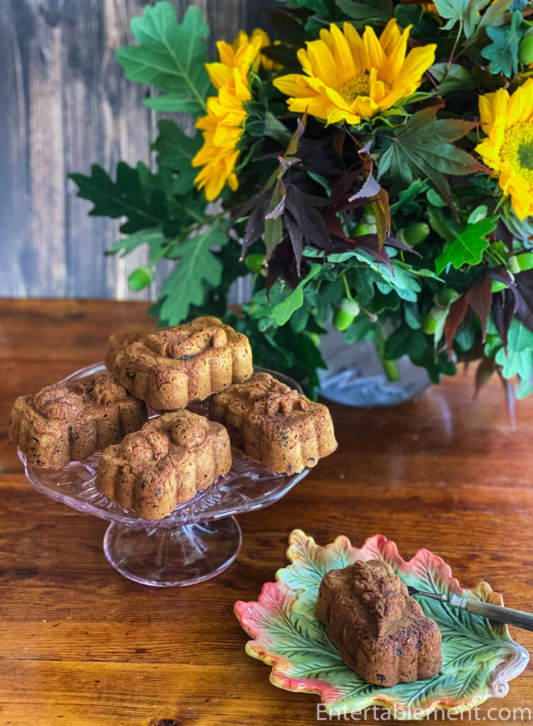 Usually, I employ a traditional 7″ square tin with a loose bottom, but this novelty pan from Nordicware makes individual loaves with leaves, acorns and squirrel shapes on the top. They’re perfect for celebrating a return to school in the fall. Seriously, wouldn’t you love to get one of these in your lunch box?
