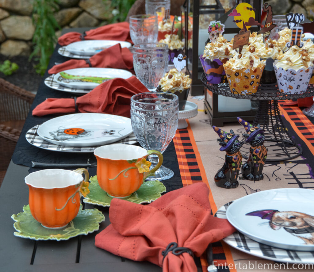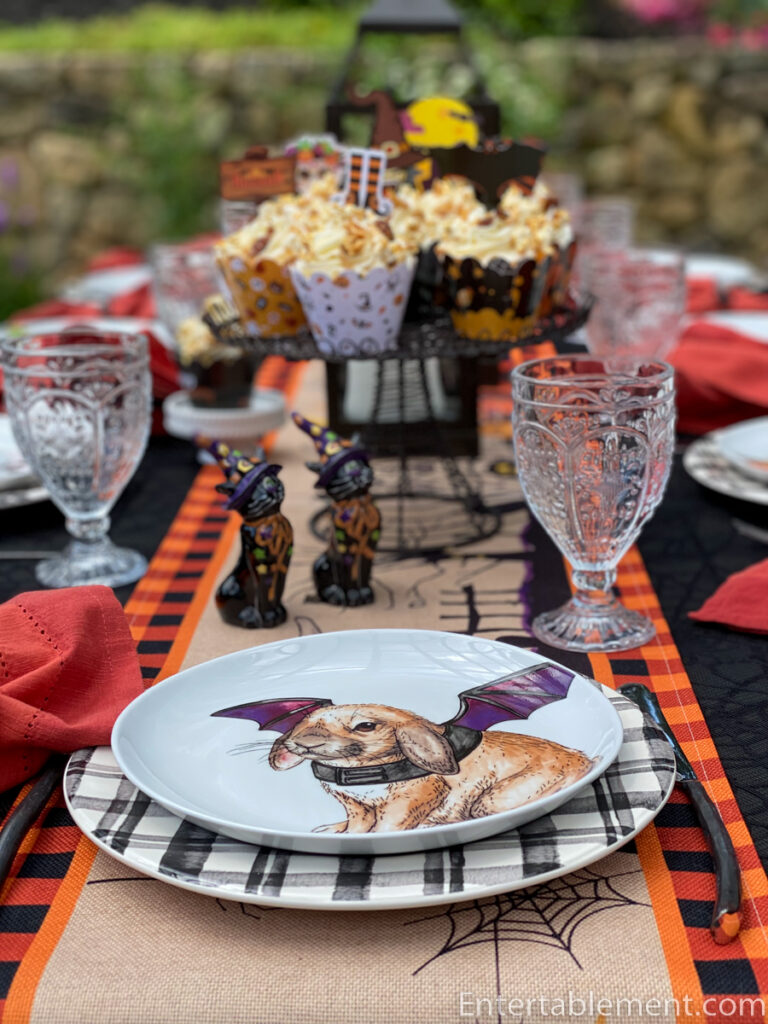 Helen this is soo cute! The dapper animals just brought a smile to my face and the Maryland china is adorable. And the cupcakes look delicious. I’m betting your grands will just absolutely love this table. Happy Halloween to you!