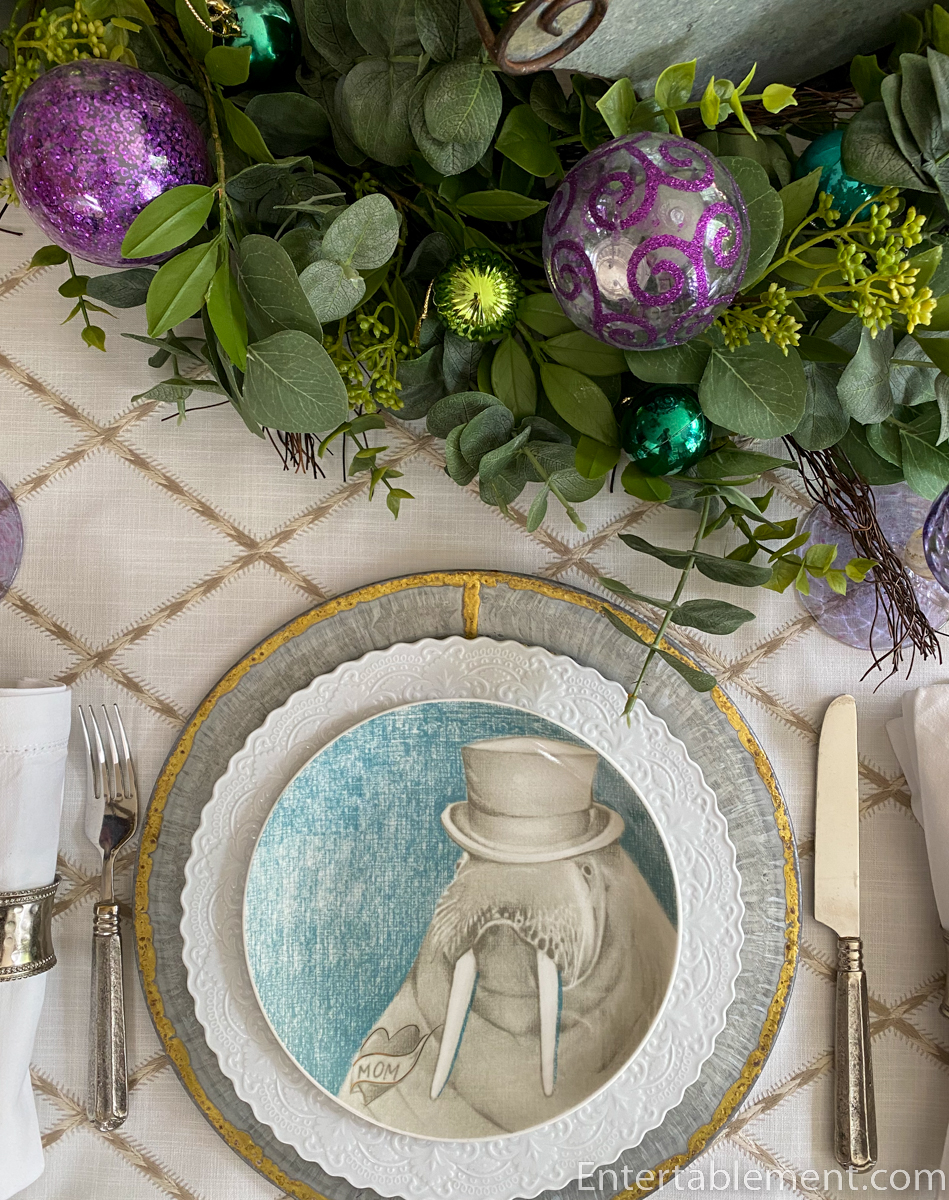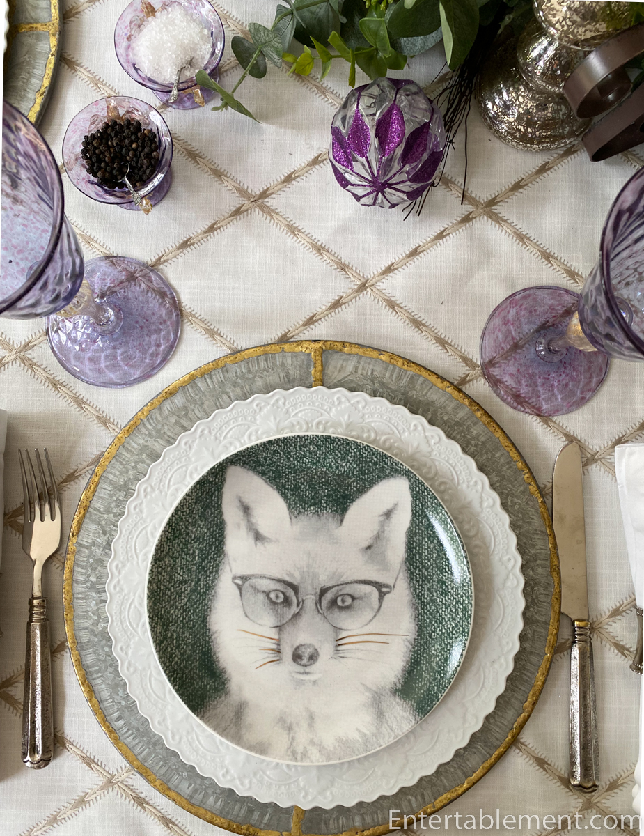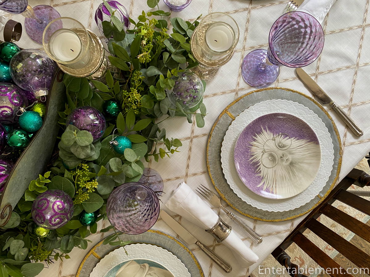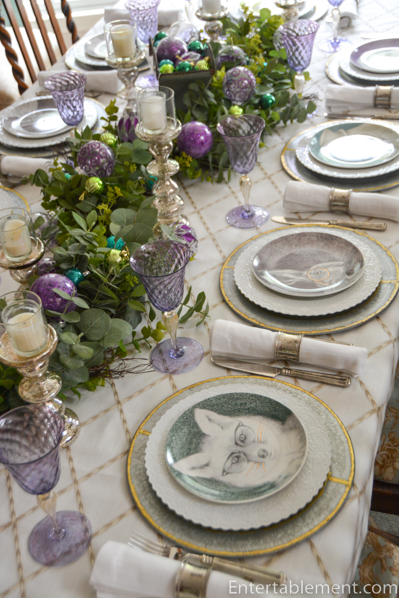 Sounds like you’re now in the Christmas spirit. These plates are the quirkiest and cutest that I have ever seen on your table. The amethyst colored additions are perfect and I’m sure you had fun putting this table together. Enjoy the season!