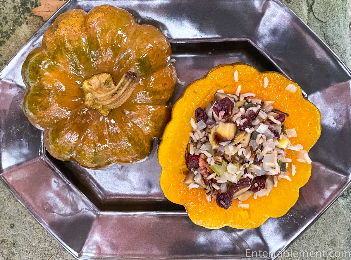 Roasted Buttercup Squash Stuffed with Wild Rice, Chestnuts and Cranberries