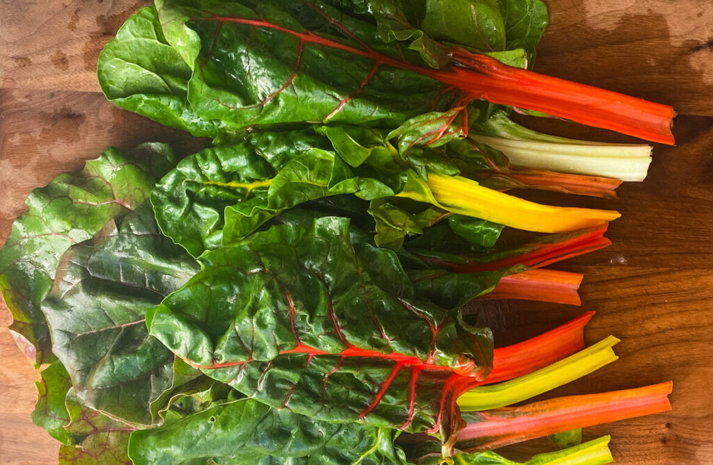 Who could resist such a gorgeous display of Swiss rainbow chard? Not me! It was in my grocery basket before I had time to think about how to use it.