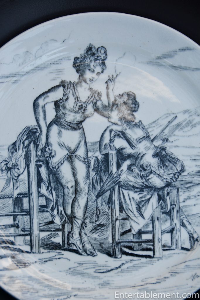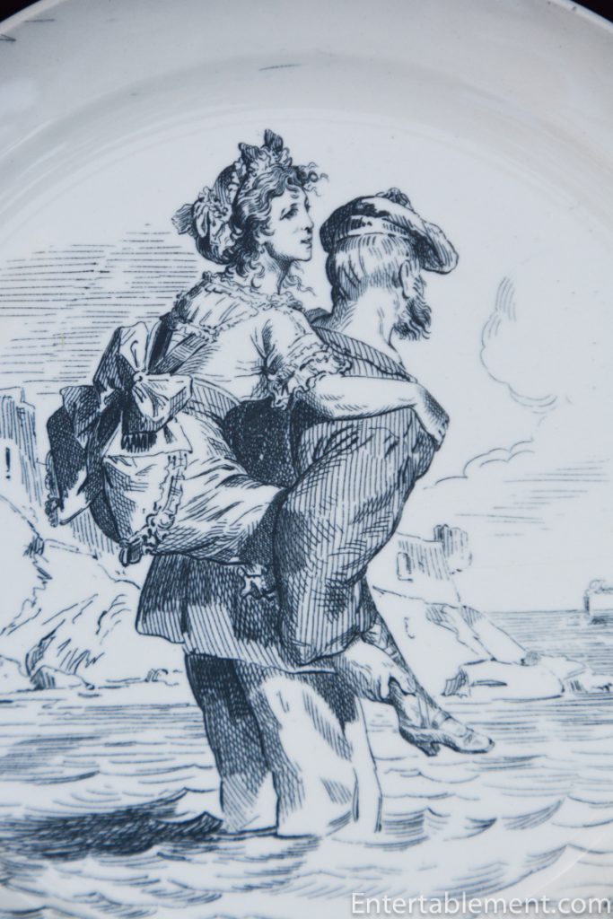 Bains de Mer is a series of twelve 19th-century plates featuring black and white etchings by Charles Hamlet, produced by Creil et Montereau.