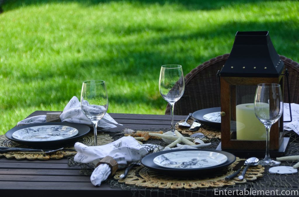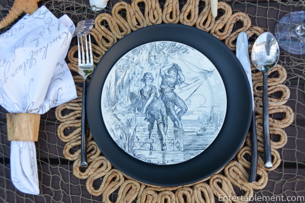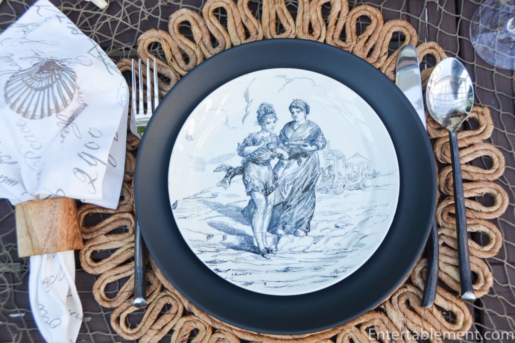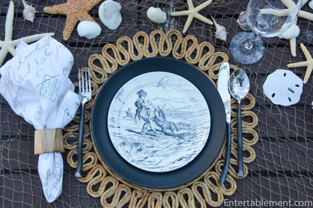 The plates were clearly the star of the show; the rest of the table was very straightforward. A fishnet formed the base, scattered with seashells.
