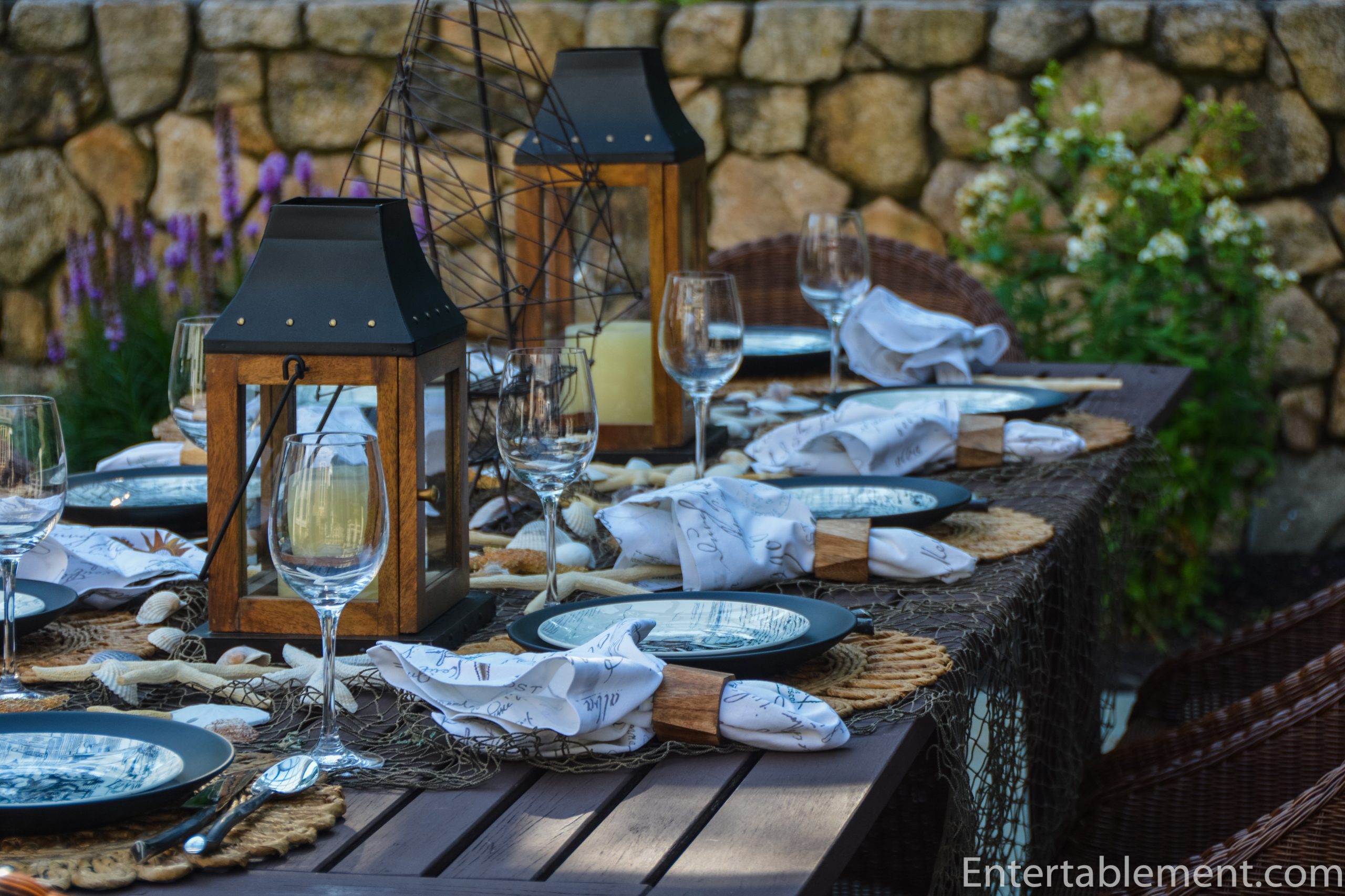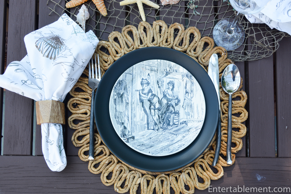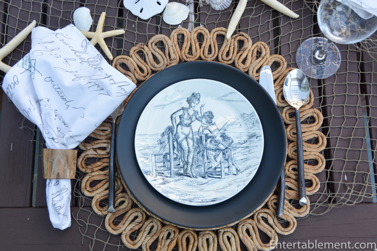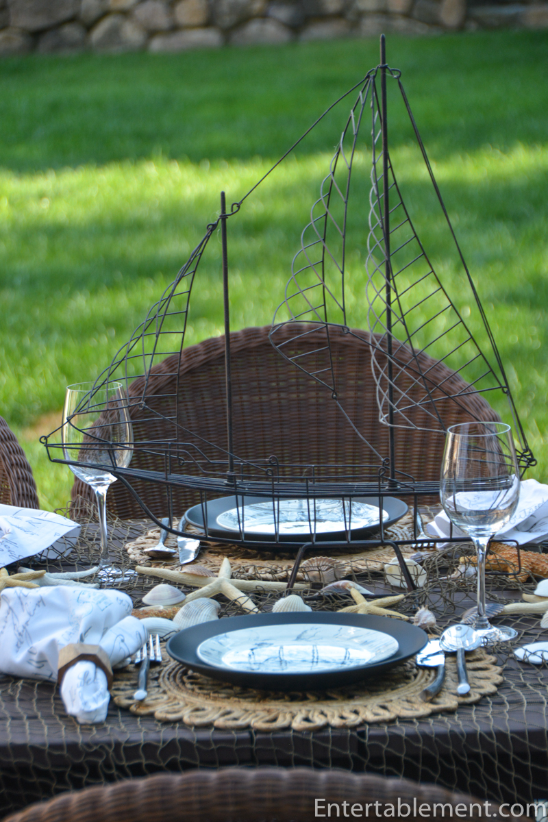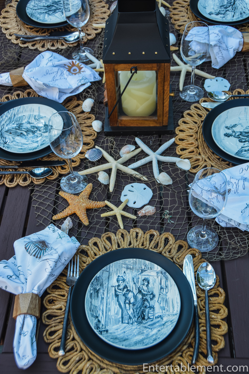 The plates were clearly the star of the show; the rest of the table was very straightforward. A fishnet formed the base, scattered with seashells.