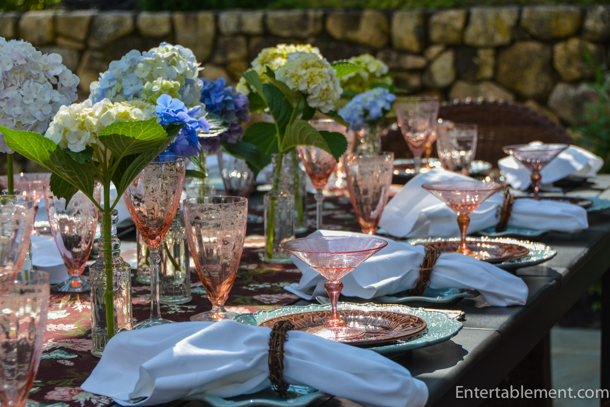 So lovey Helen! I’m glad you got a few hydrangeas for the gorgeous table. Thanks for another round of inspiration – I’m going to look for some of that lovely blush glassware! Happy Labor Day!