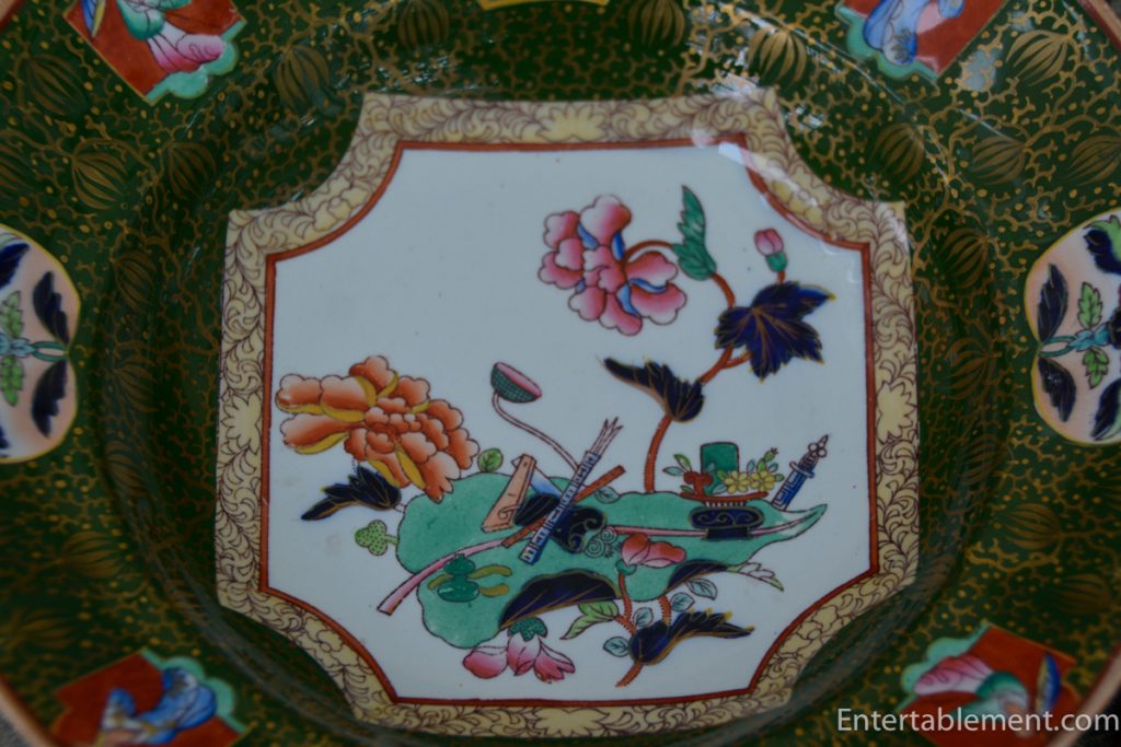 In turn, Francis Morley joined forces with Taylor Ashworth, and from 1859 to 1862, the company traded publicly as Morley & Ashworth. The Morley portion didn’t last long, though and three years later, the company became known as G.L. Ashworth & Brothers. It stayed that way for more than a hundred years until 1968 when the Ashworth brand reverted to “Mason’s Ironstone China”. It was under that name that the Game Bird Series was issued. Which comes in both green…