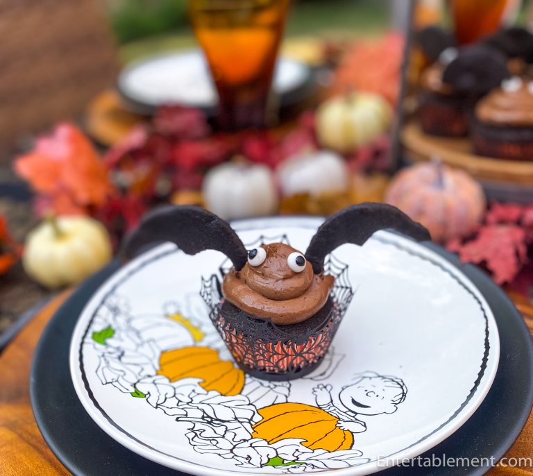Chocolate cupcakes are frosted with luscious chocolate French buttercream. The wings are made with sinfully delicious dark chocolate wafer cookies. Add the candy eyes and drop the cupcakes into spidery cupcake holders, and you’ve got deliciously fun Halloween cupcakes.
