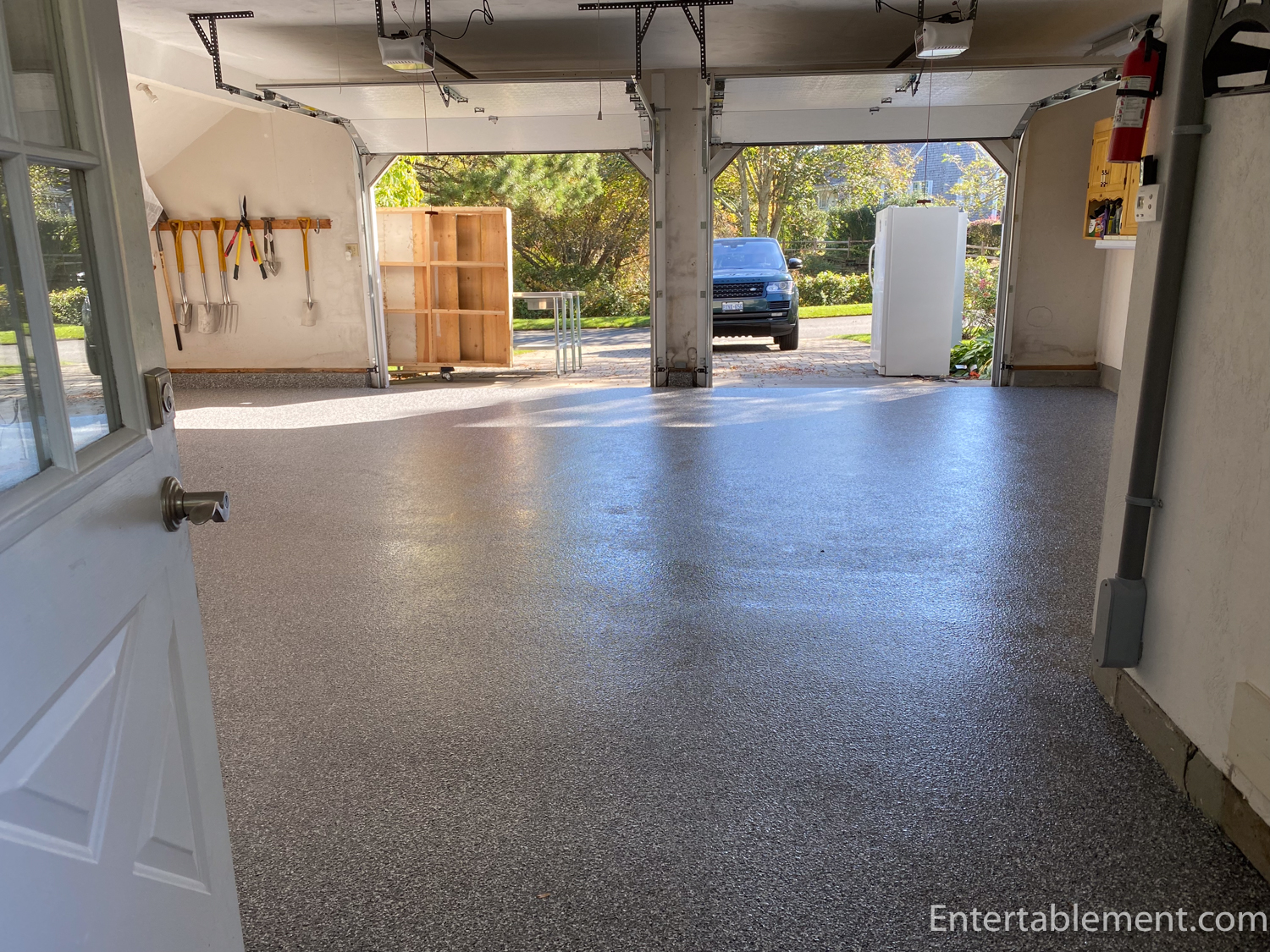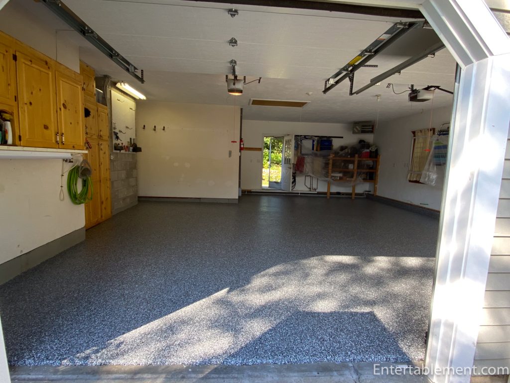 It’s a gorgeous weekend here on the Cape. We are putting our garage back together after having a polyurea floor put in. Here is the garage, emptied and awaiting the new floor.