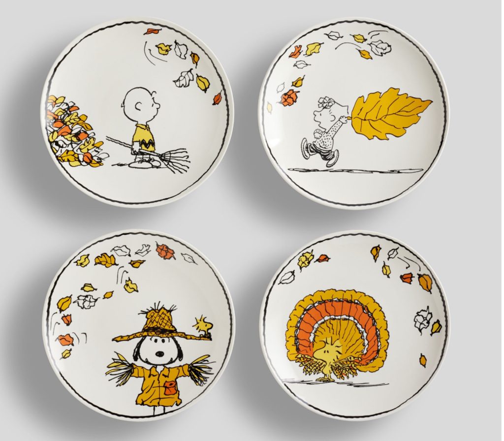 The Peanuts Thanksgiving appetizer plates were an eBay find.