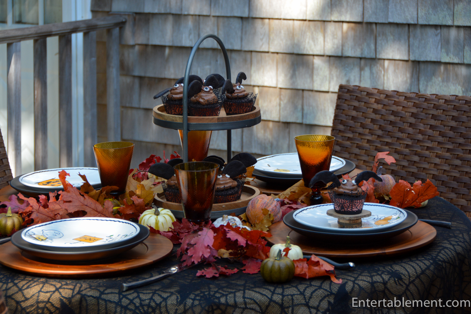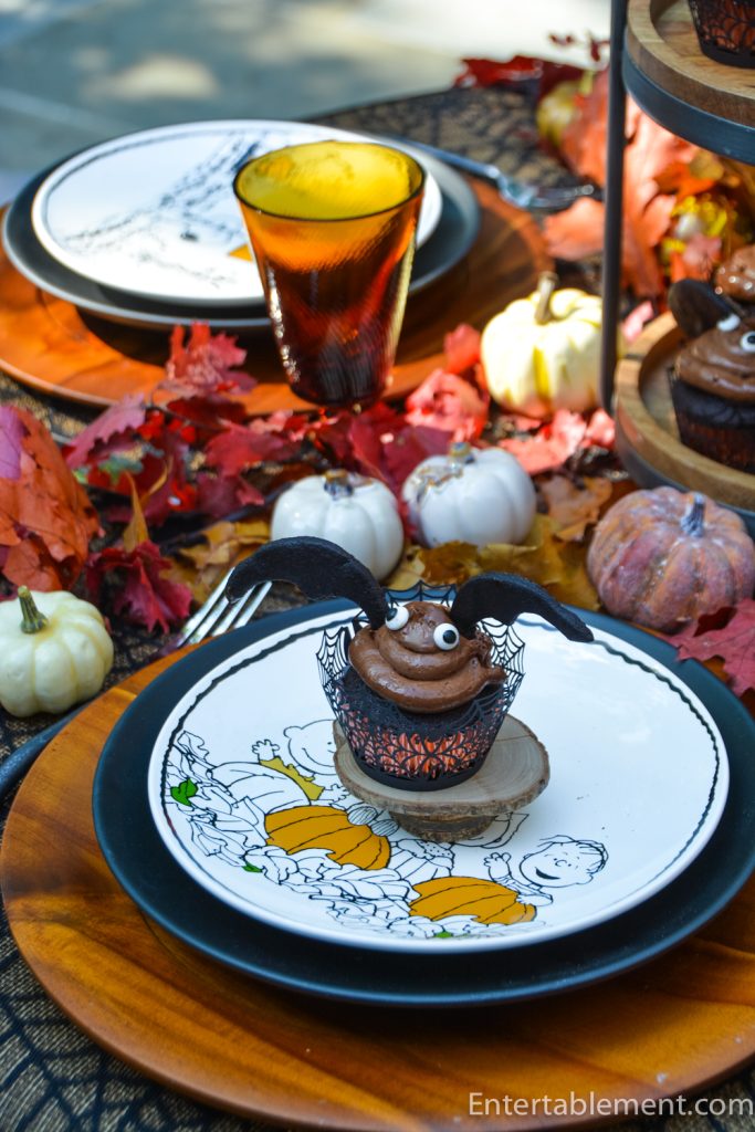 I had already decided to make the Chocolate Bat Cupcakes with their spiderweb cupcake holders, so the spiderweb tablecloth was an easy decision.