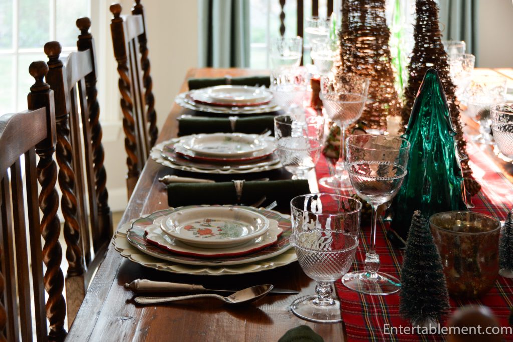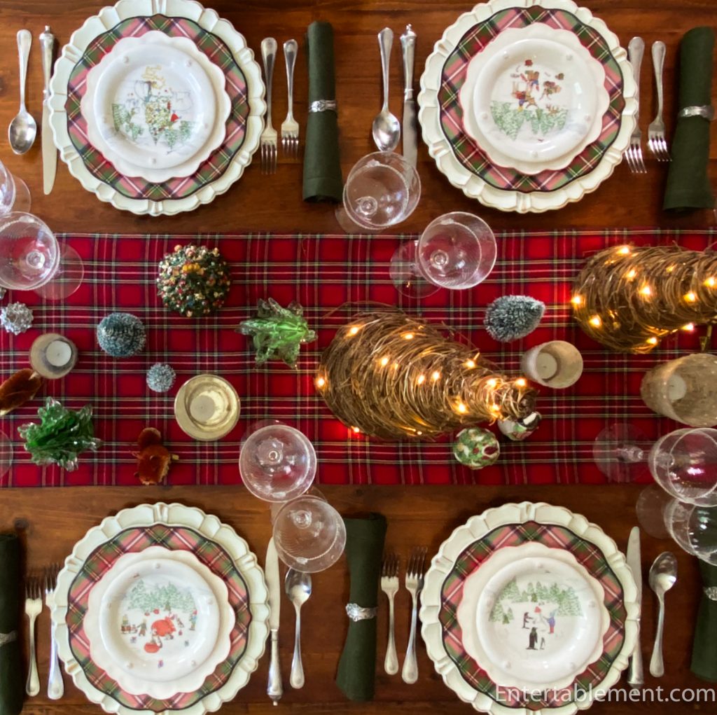You’re right in that I rarely feature only one designer at a table, but somehow the Juliska pieces all seemed to work best together for this table. The Graham goblets are visually very appealing but they’re extremely delicate and not well-balanced, so they get less frequent actual use than other clear glassware. Until you pointed it out, I hadn’t realized that plaid has become “Christmas”, but you’re so right! Time was it was common for people to have tartan furnishings, from upholstered pieces to carpeting, and of course, kilts still predominate as school uniforms. But by and large, plaid = Christmas.