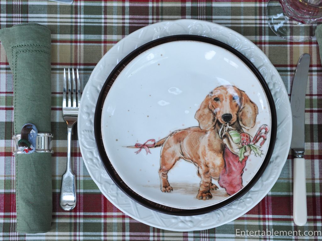 Christmas Eve dinner is the big annual family event in the Entertablement household. Weeks of preparation culminate in a few joyous hours of drinking, eating, laughing, exchanging presents and finally, relaxing. Due to popular demand, the menu is unvarying, but the table setting is different every year. This year, it was dogs. Many, many dogs.