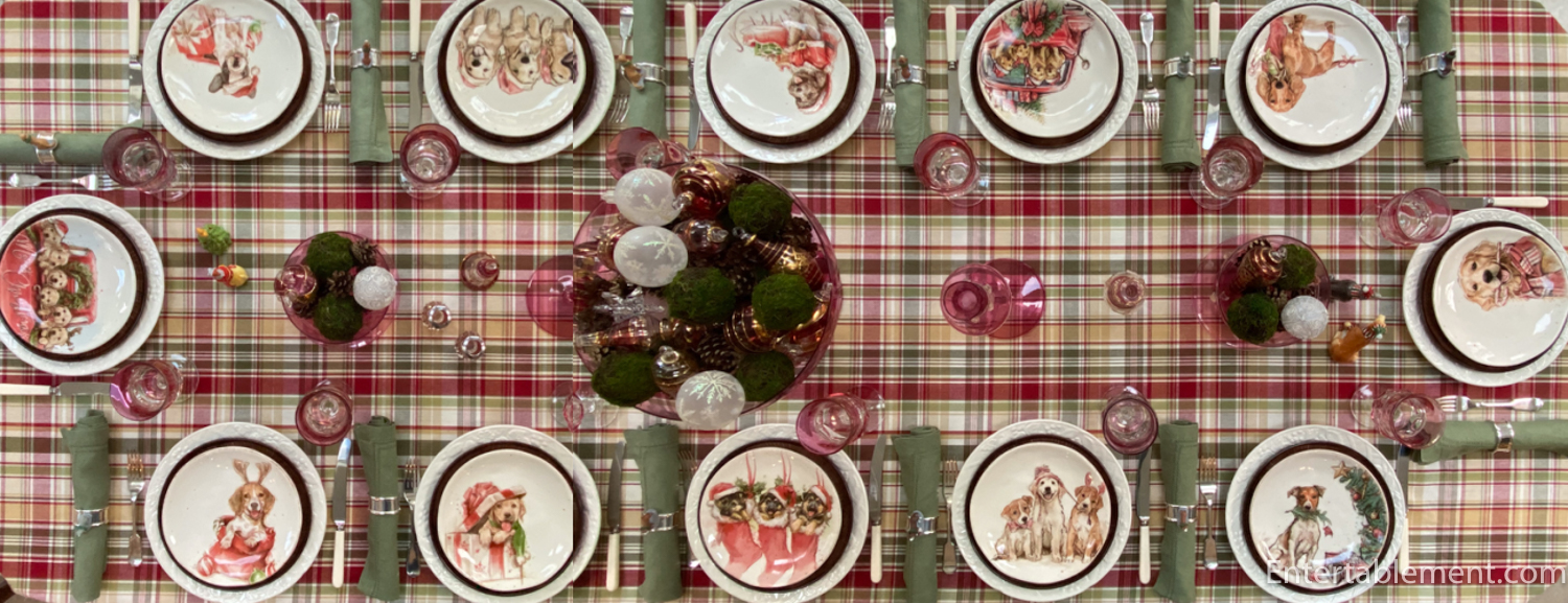 These plates are far too engaging to make me pay attention to what I am sure was a delicious dinner. Oh, those puppies. Fun table for an enchanting evening. Thanks for another year of inspiration. Best wishes, B