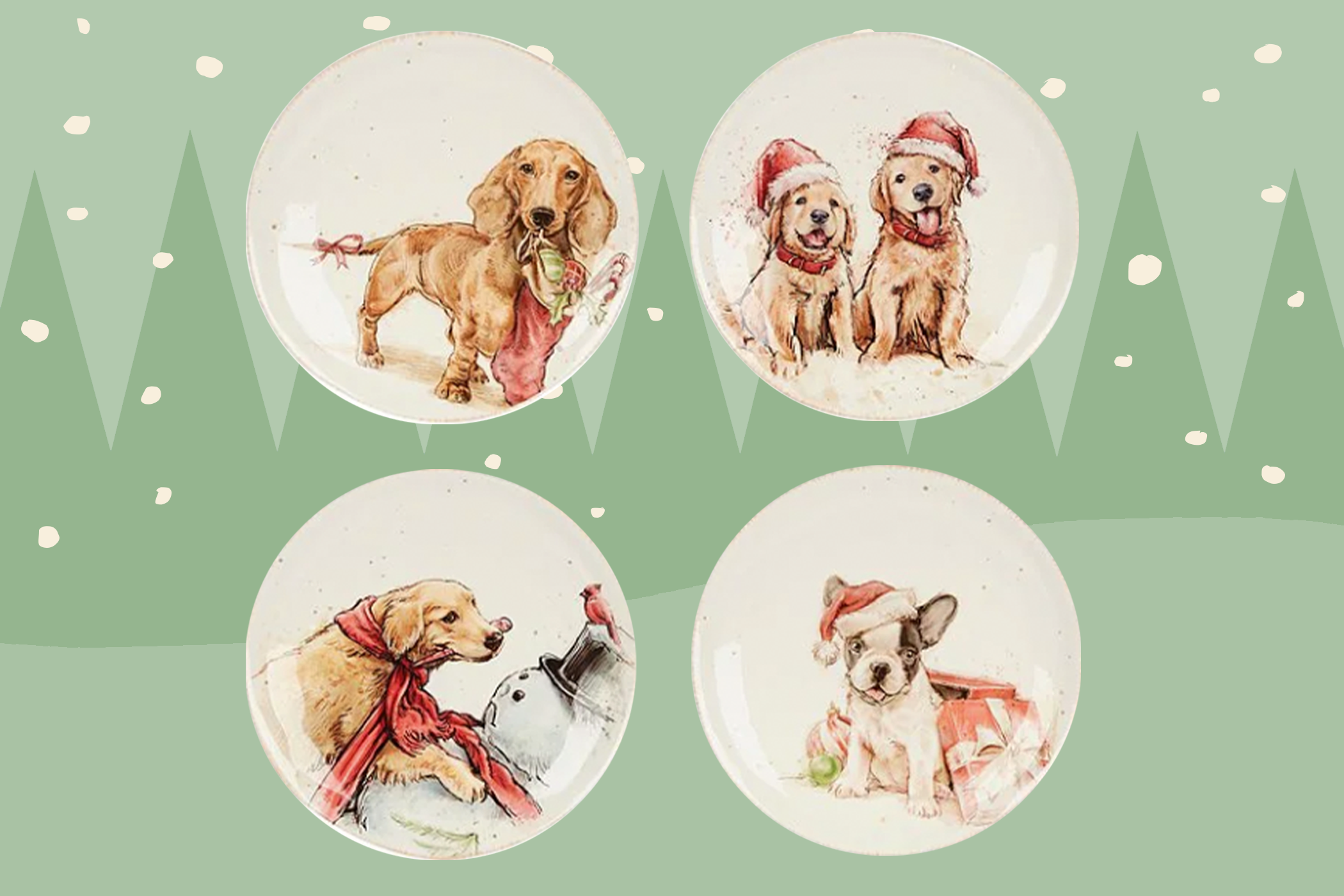 Southern Living has been producing this series of “Christmas Dog” plates for a while now and adds one or two each year. I discovered them about five years ago and have been picking them up gradually on eBay. I’ve now accumulated about sixteen plates with twelve different patterns. Enough for our gang, anyway!