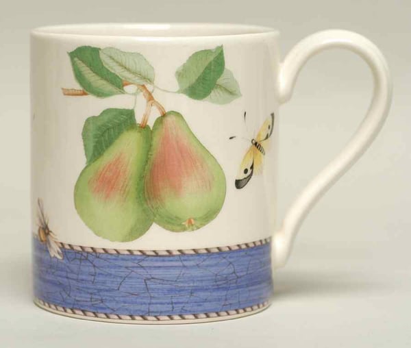 pears, the same fruit that adorns the large blue mug—perfect for soup, latte or hot chocolate.