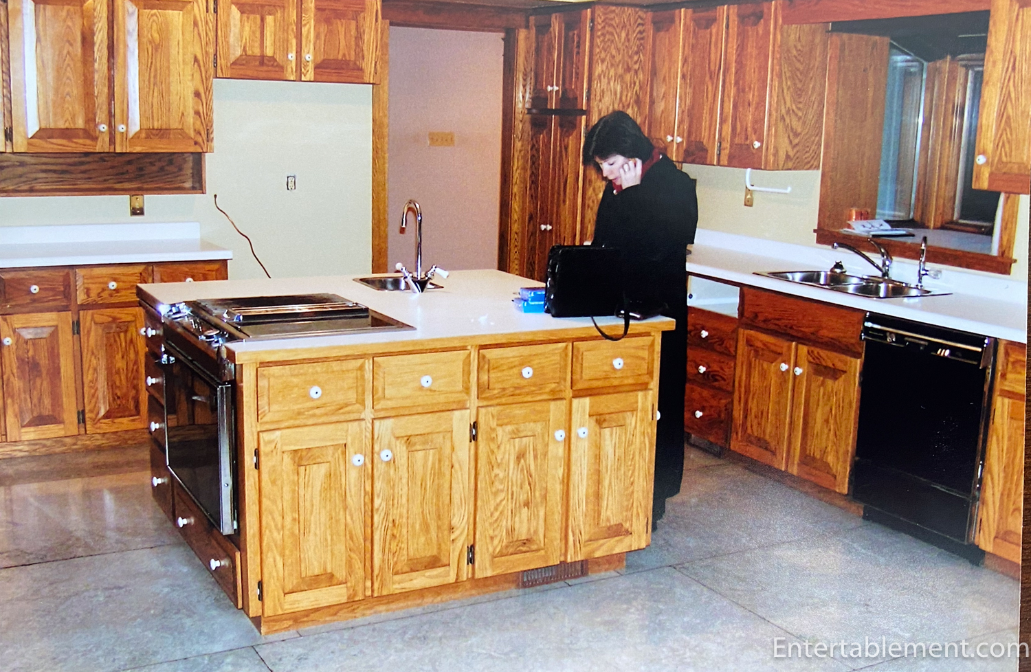 And so the house has largely remained until this latest go-round, though we did replace the lean-to eating area about ten years ago. Here it is with its new coat of green paint; the colour matches the scullery island in the butler’s pantry.