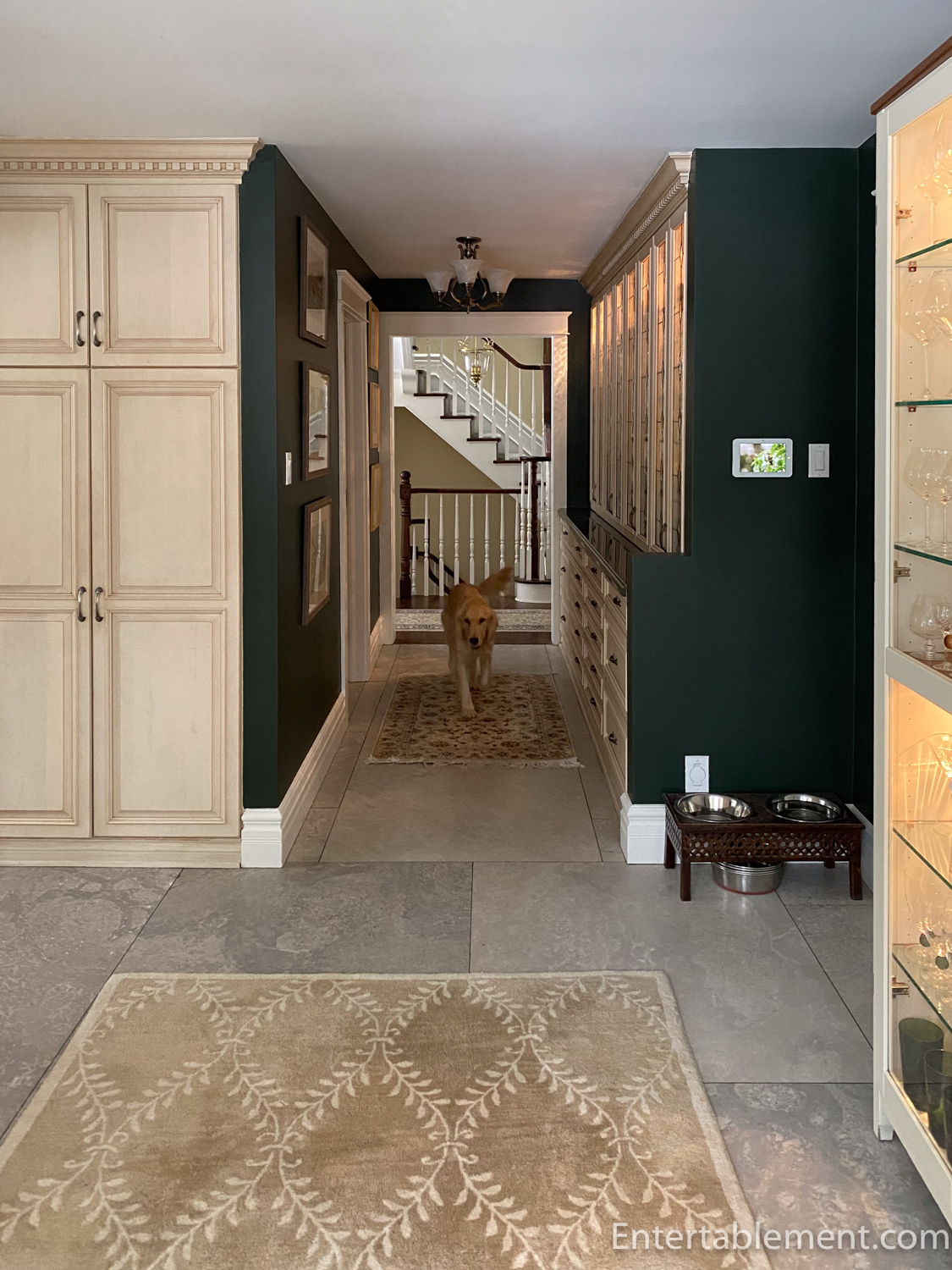 Let’s go back into the butler’s pantry now. We painted the walls there the same deep green.