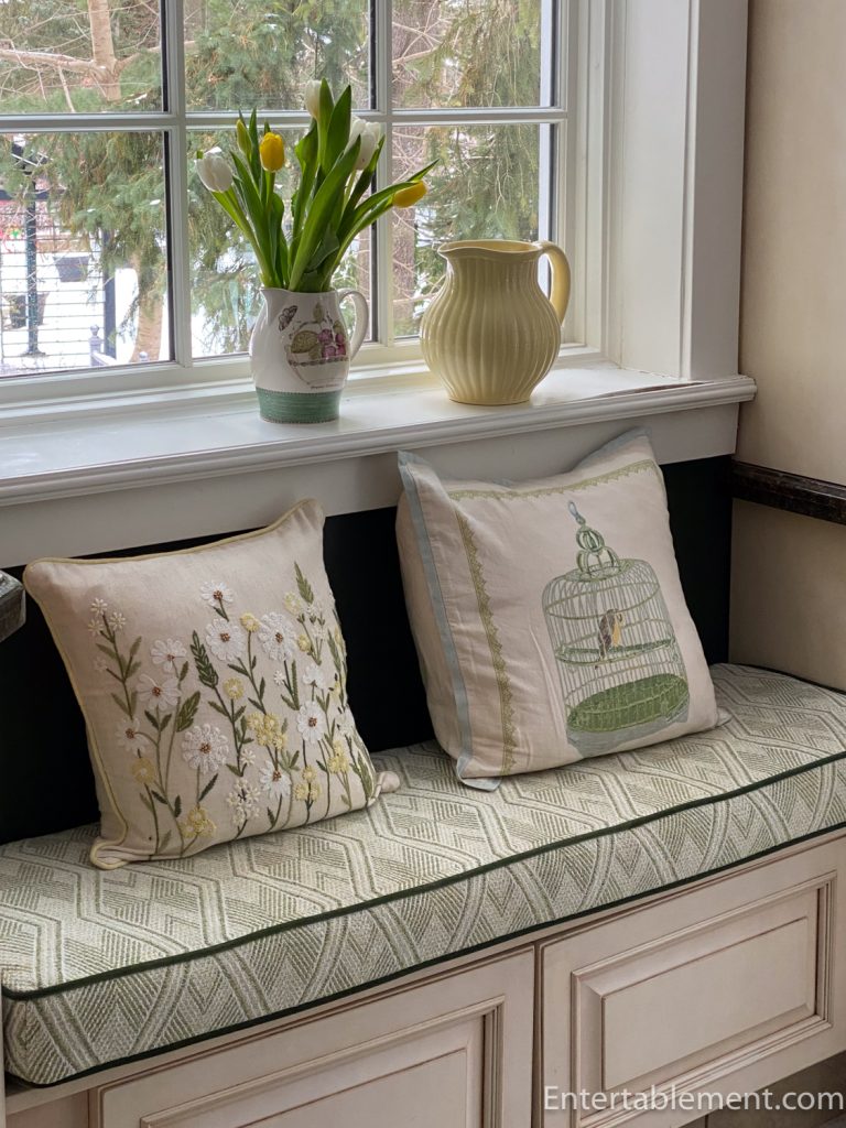 Beautiful and very you! Great refresh and so exciting to see the transformation. From the kitchen to the master bath its all elegance! Enjoyed seeing everything. Congratulations on your new home. Love the bunny & bird pillows too. Everything is so pretty. Thank you for sharing.