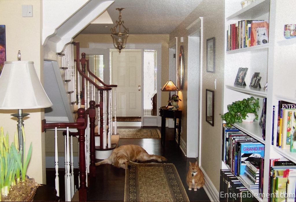 Looking around with fresh eyes, I realized, to my astonishment, that twenty years had passed since we had bought this house. The architectural design is odd, almost as if the original owners couldn’t decide if they wanted a traditional Georgian/Federal style or a North American farmhouse. The bones of the house are Georgian: a centre-hall plan with a formal living room on one side and the dining room on the other. In its original guise, it had a stiff portico over the front door and a circular driveway.