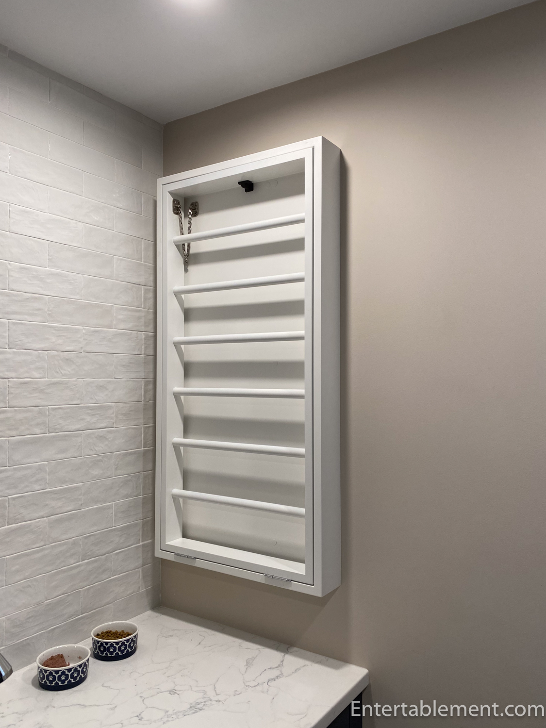 The cabinet people supplied the drying rack, but I’ve seen something very similar at Ballard Designs and West Elm. It works like a charm.