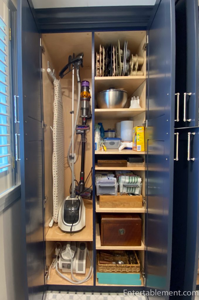 It sounds like you have your kitchen well in hand, also! I considered a drop down ironing board but find that I often need to drape large tablecloths over the end of the board. I was concerned that having the board in a fixed position might prove awkward. Please let me know how yours to work. I’m curious.