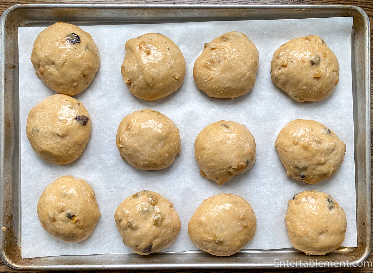 - Cover the pan; let the buns rise until they’ve puffed up (1 hour).