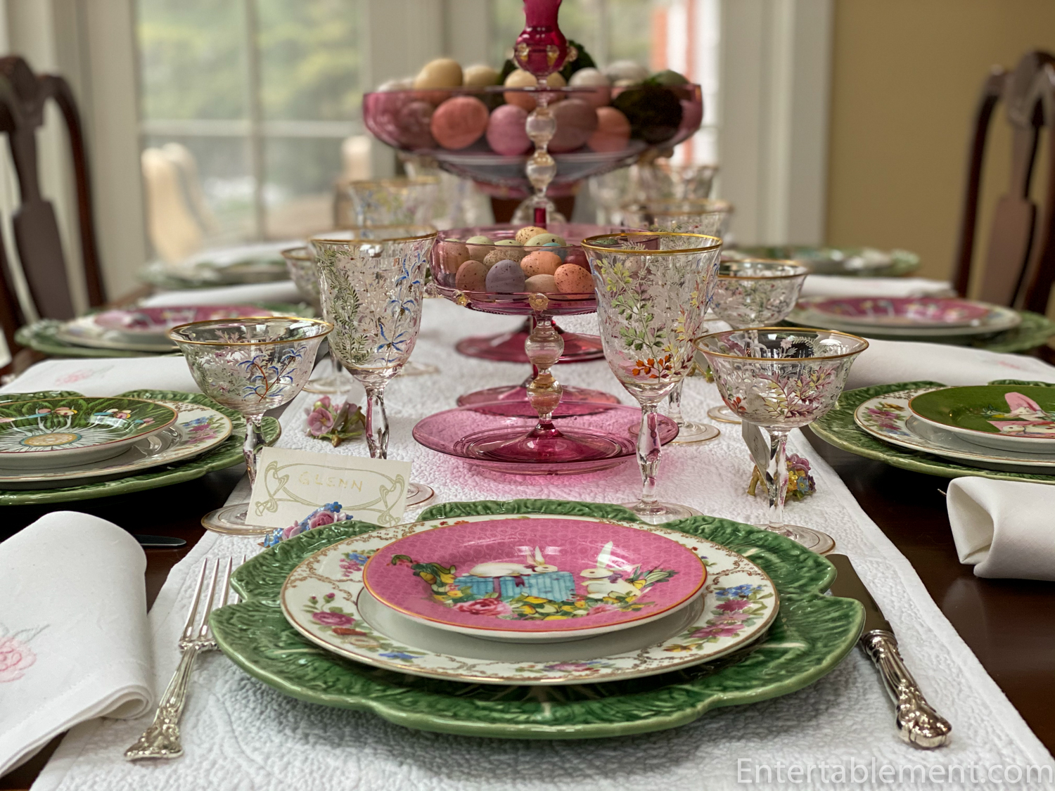 A solid border dinner plate in the same pattern appeared on this Famille Rose Easter table a few years ago.