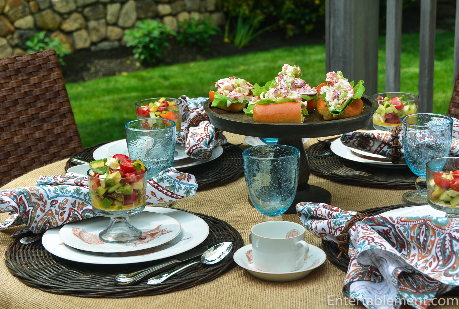 While we often pick up Lobster Rolls from the take-out window at the Sesuit Harbor Café to enjoy a sunset picnic on the beach, I decided to make them at home for this Casual Afternoon Tea with Coquille from Fitz & Floyd.