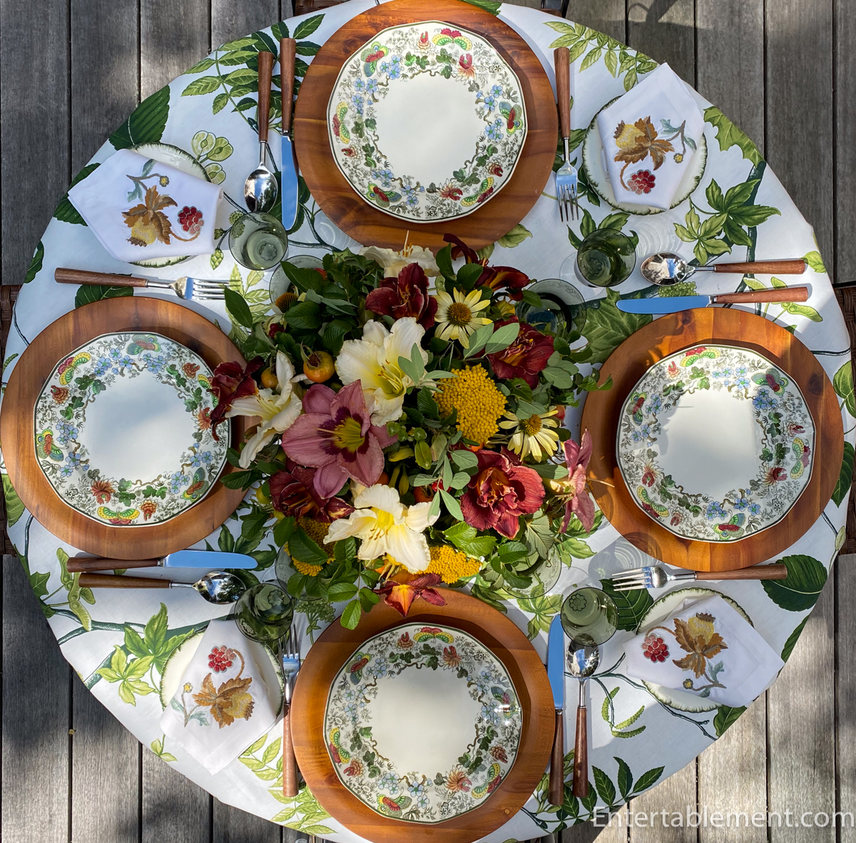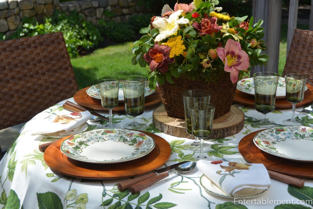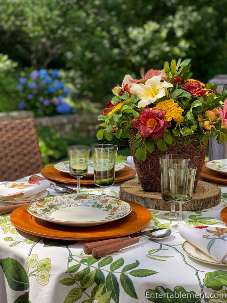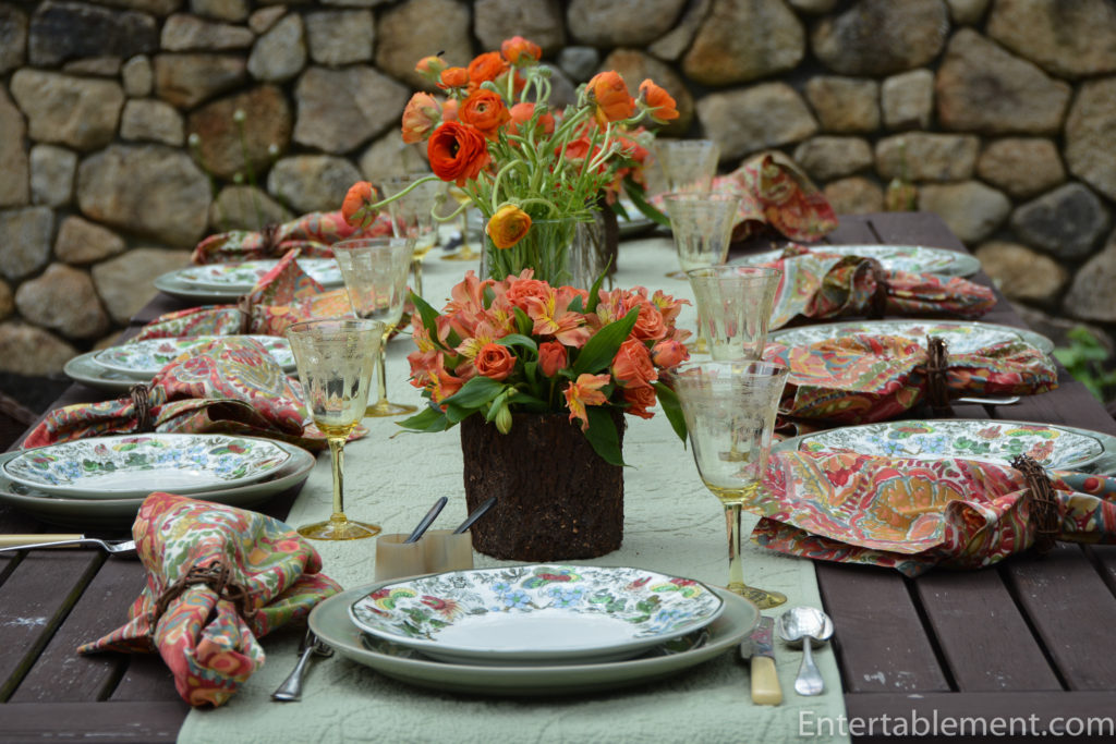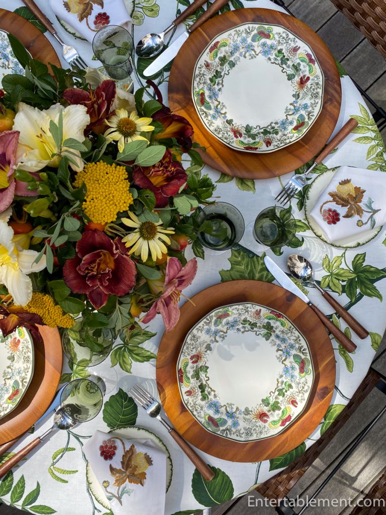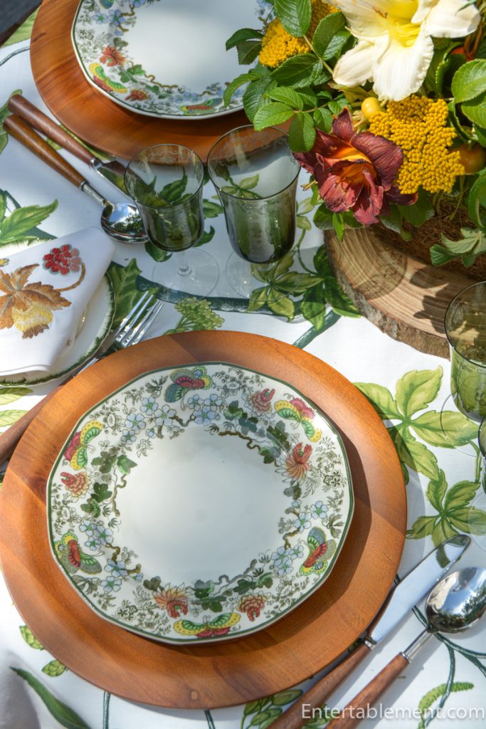 Indian, a vintage pattern by Royal Doulton, features rich greens and reds, a sunny yellow, and clear blue. It is perfect for a transition table to bridge the joys of summer with the upcoming fall delights.