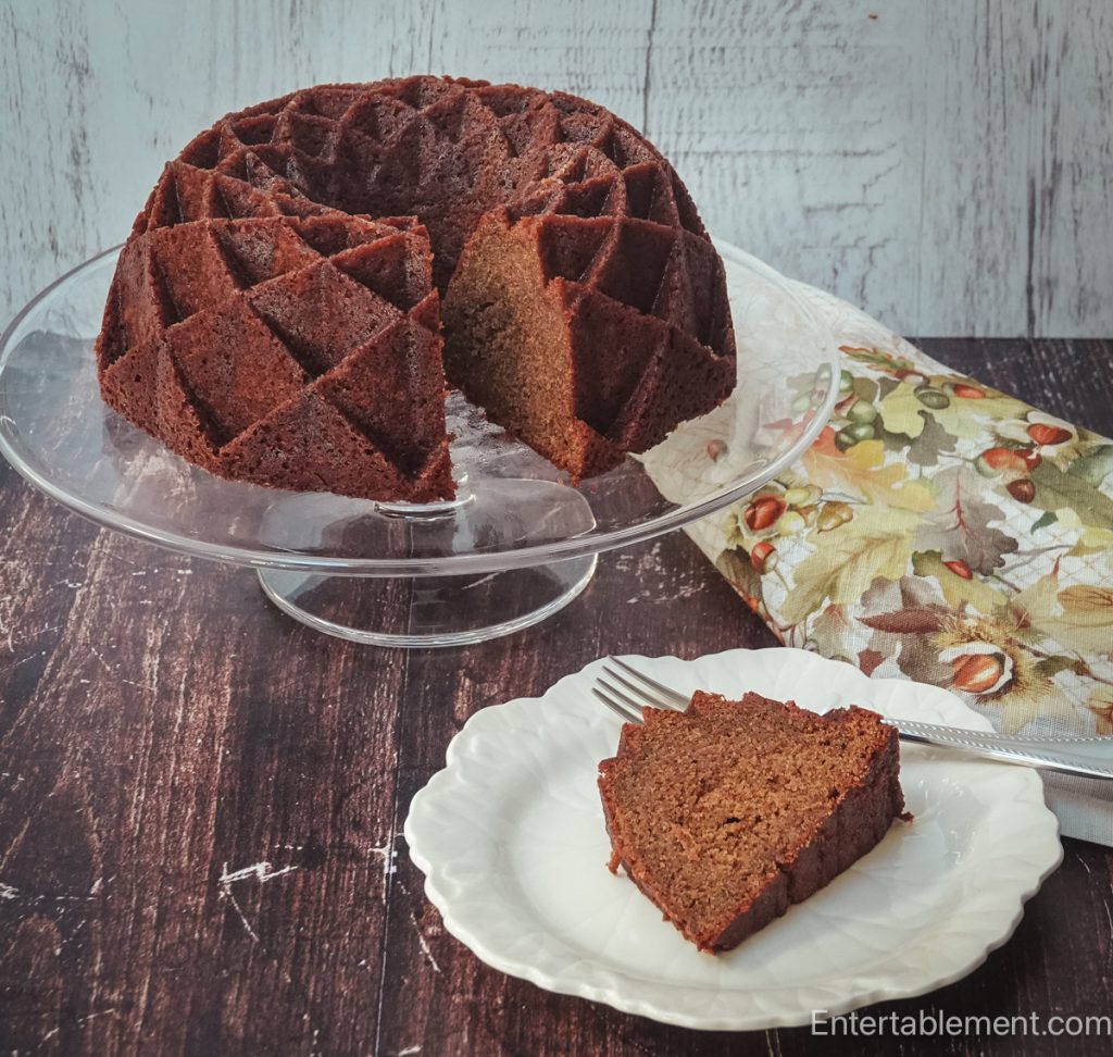 I made the cake in the elegant full-sized Jubilee Bundt Pan because I wanted it as a centrepiece, but the recipe can easily be divided in half. Better yet, make a few smaller cakes for gifts or the freezer.