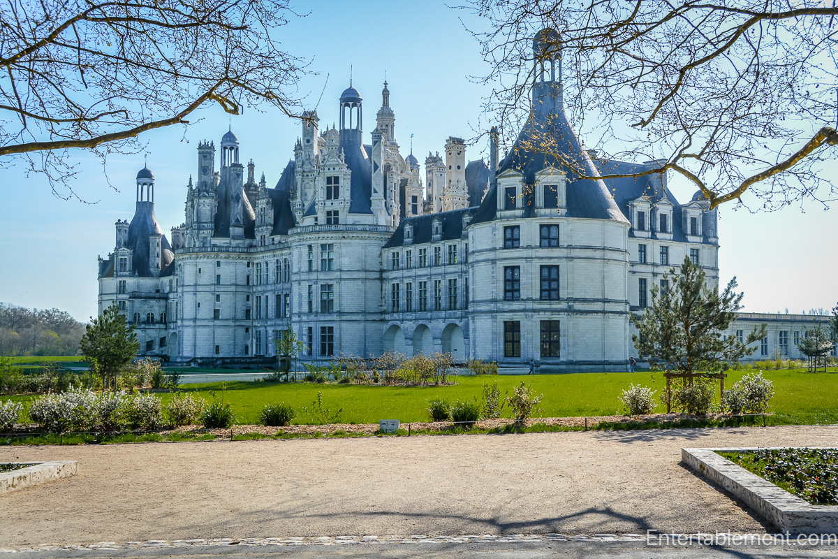 It isn’t easy to photograph. To get the same profile as the plate, you must go across the river, not on the cards, on the day we arrived. So, you’re getting a side shot. Full blog over here at Entertablement Abroad: Château de Chambord